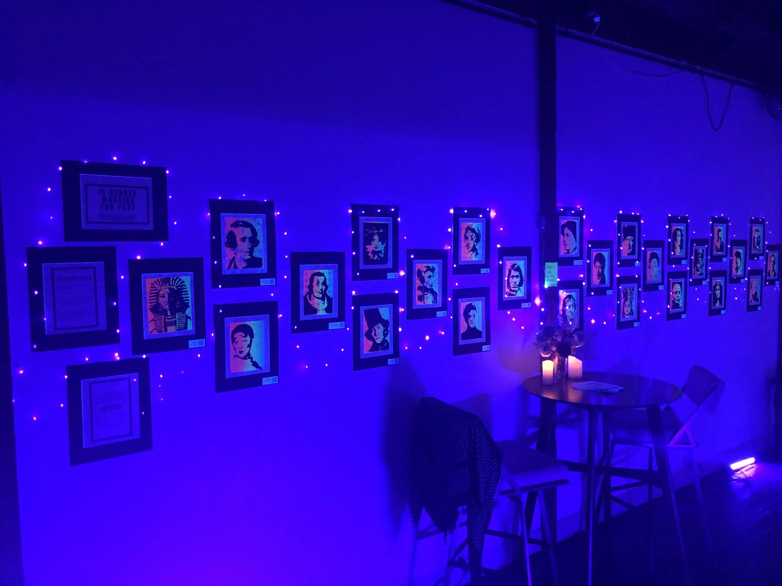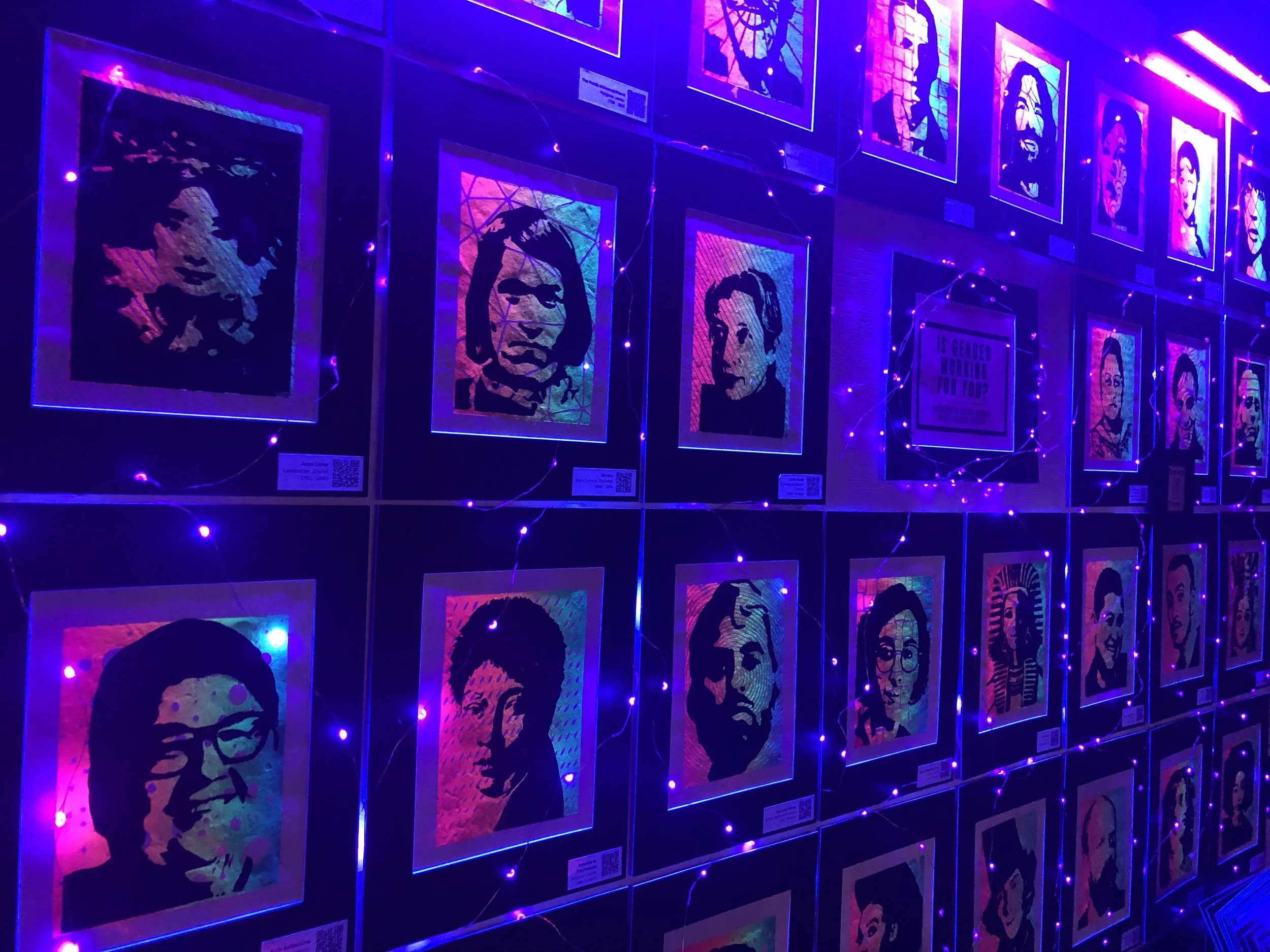 Each portrait has a unique QR code connected to a video of the process used to carve the portraits, as well as a voiceover biography. Viewers are encouraged to write their own responses to the titular question in fluorescent ink.